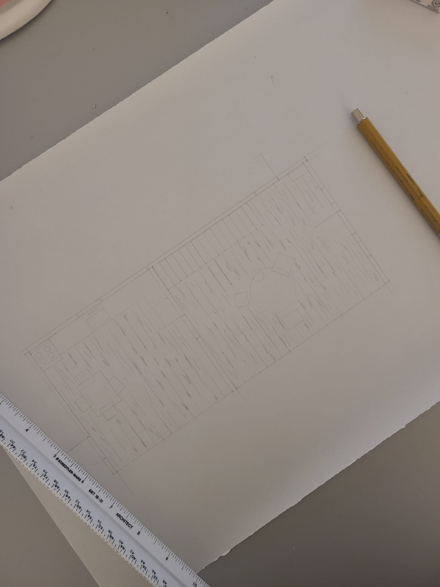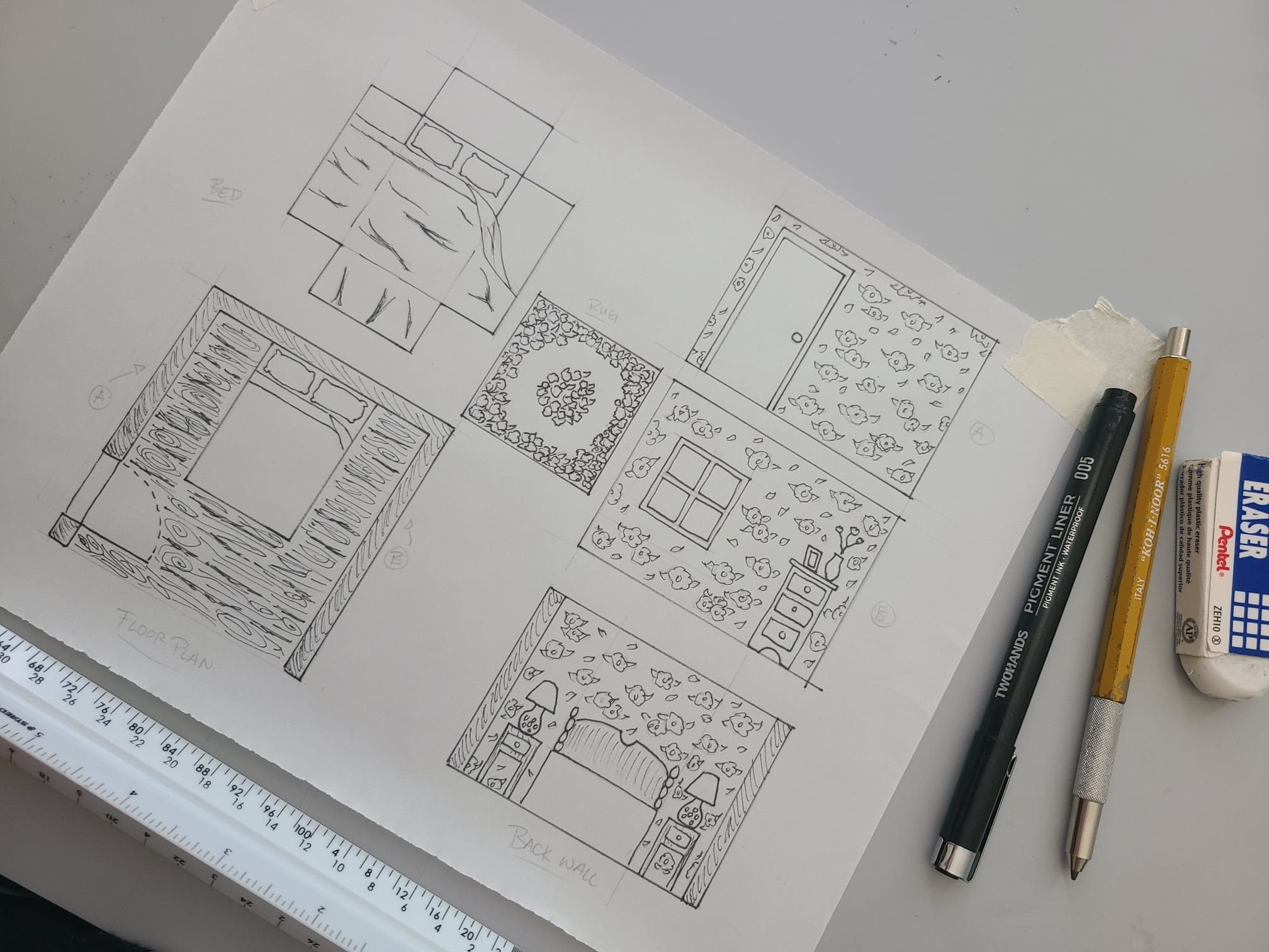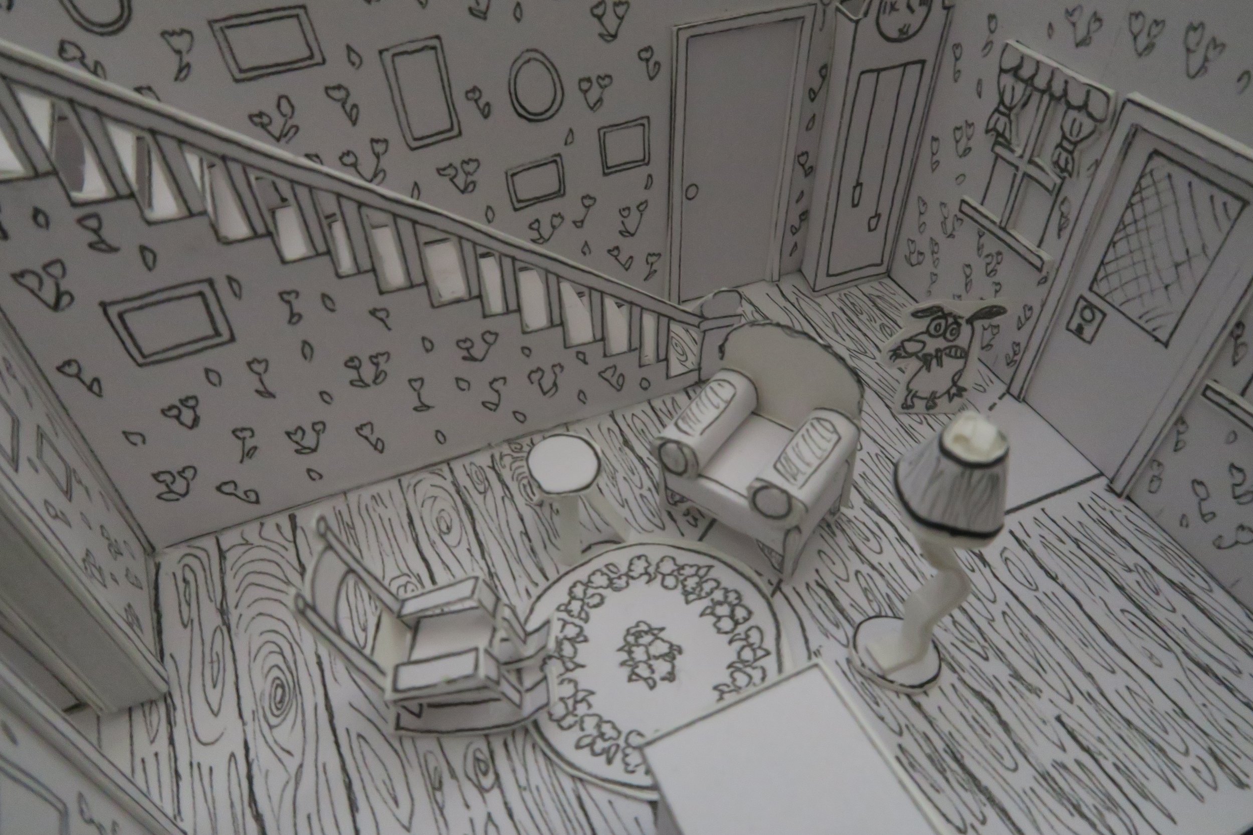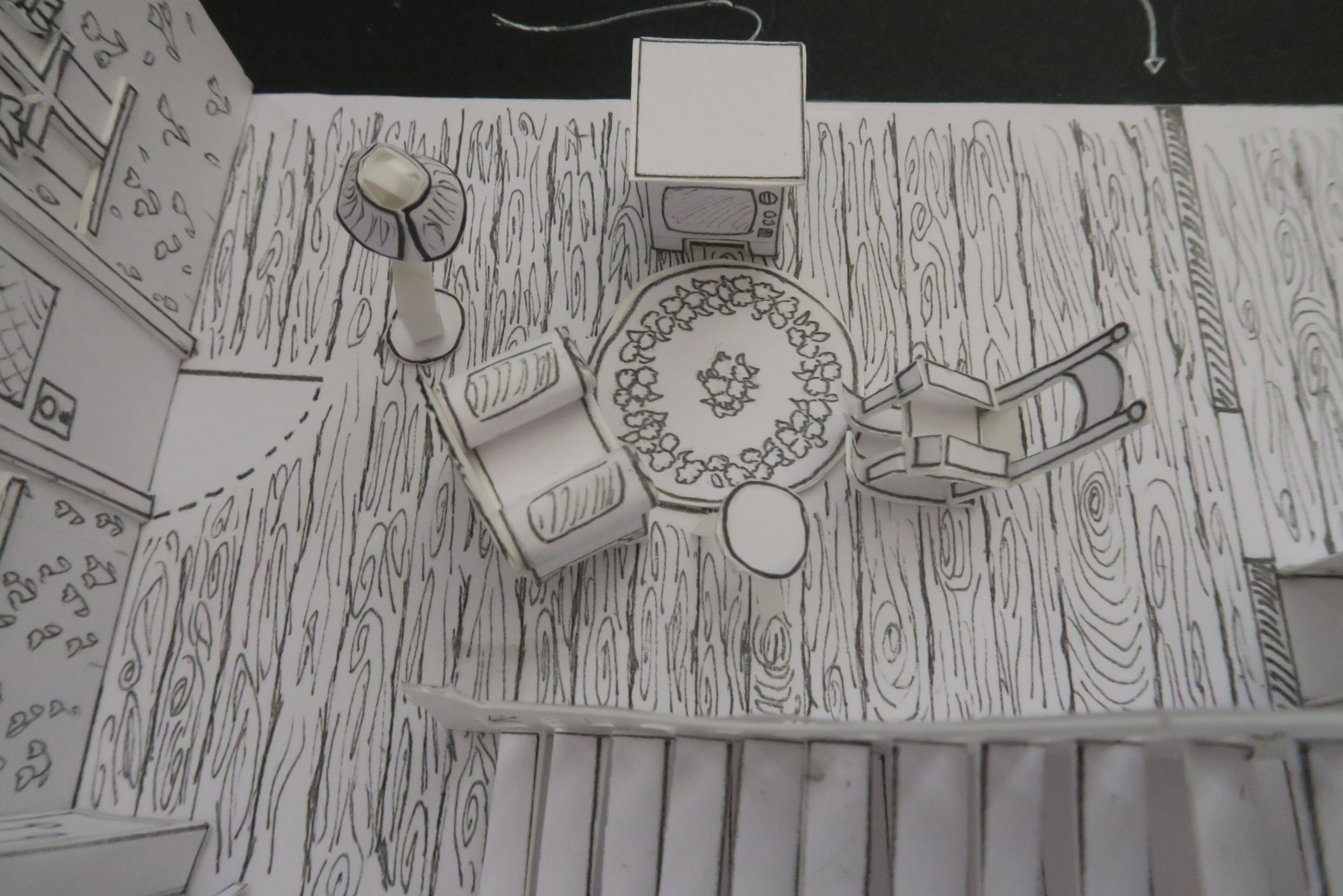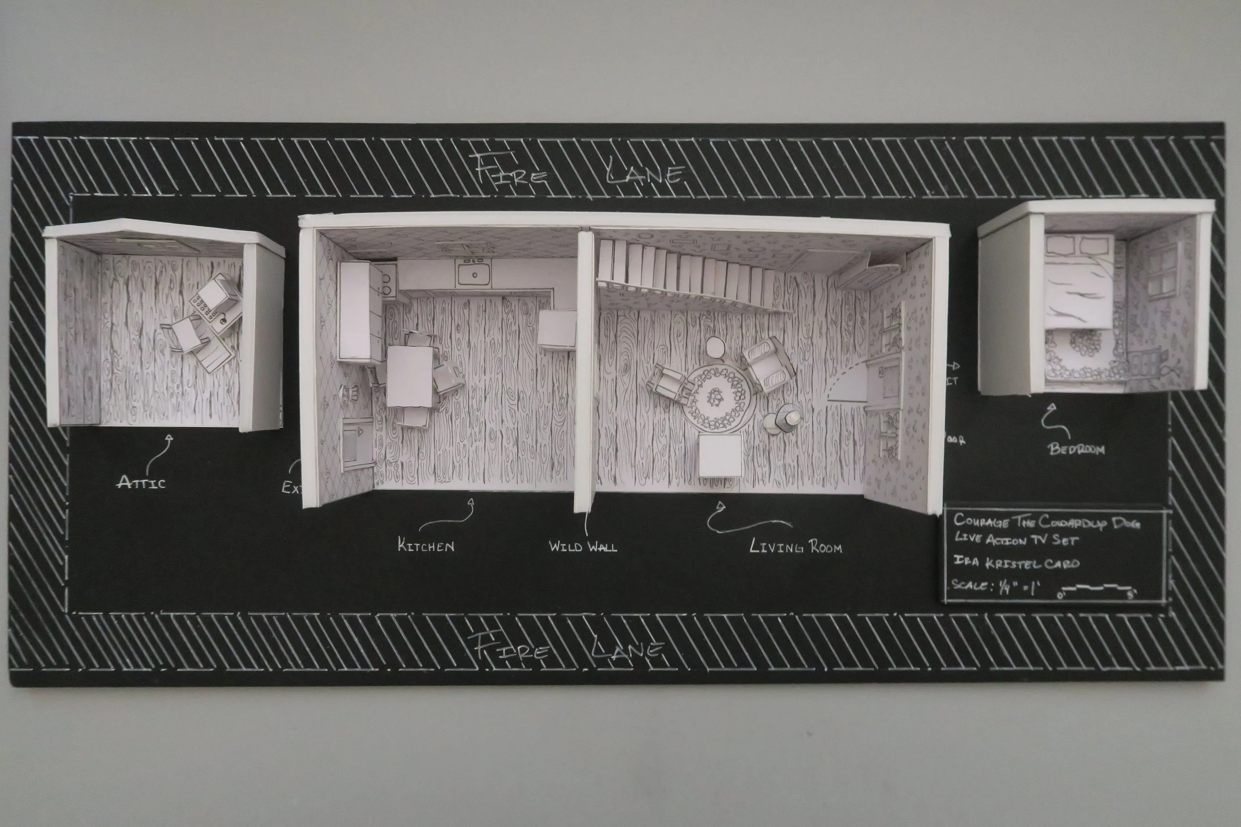 I am the concept designer, draftsman, and model maker for this project. I conceptualized the idea of making the cartoon, Courage the Cowardly Dog, into a live action television set.