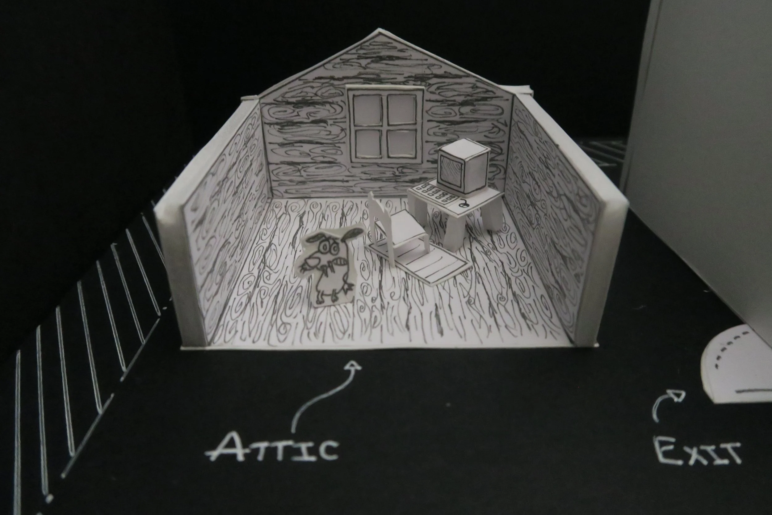 I chose the cartoon, Courage the Cowardly Dog, because it is a show I loved when I was growing up and thought it would be an interesting choice. I chose to design and model living room, kitchen, attic, and bedroom of the show.